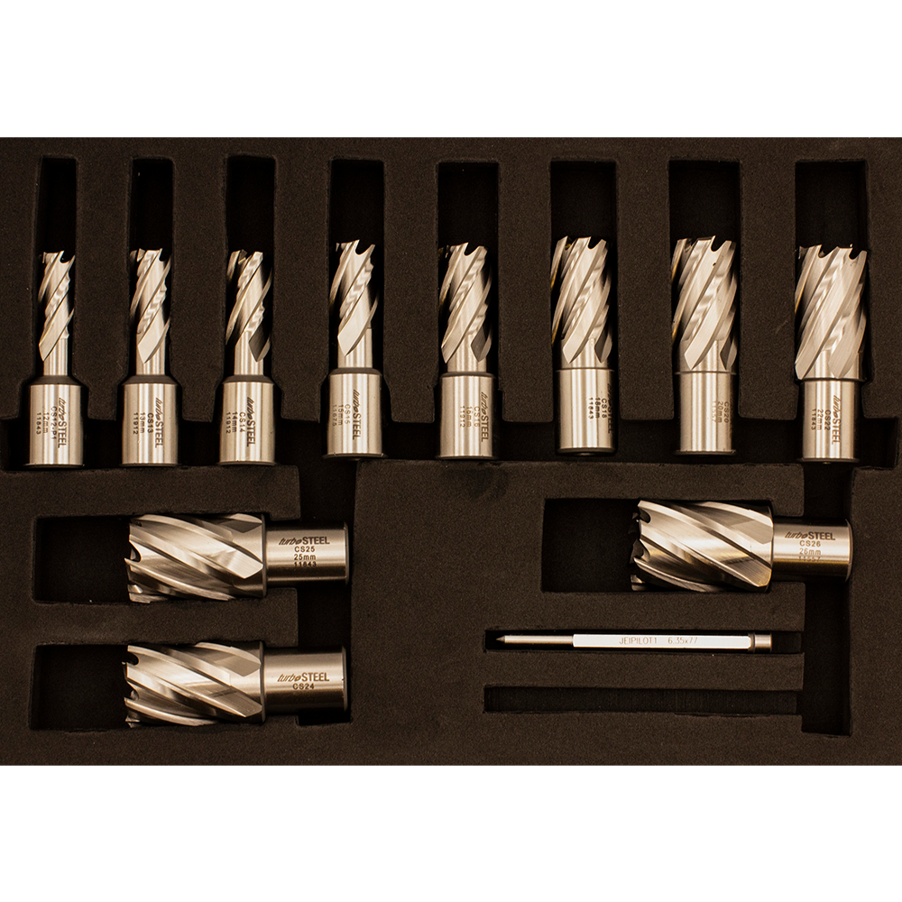Set includes 12, 13, 14, 15, 16, 18, 20, 22, 24, 25, 26 mm & 1 pilot pin.