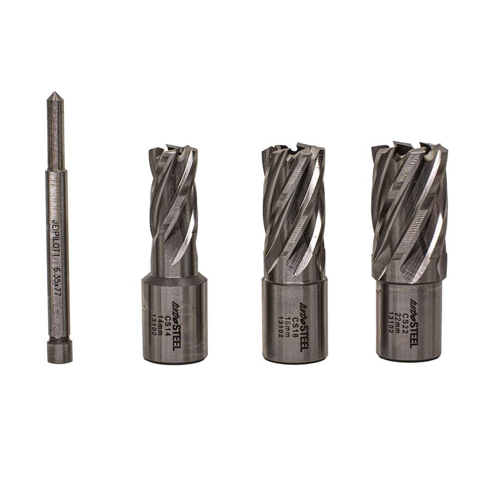 Set includes 14, 18, 22 mm & 1 pilot pin.