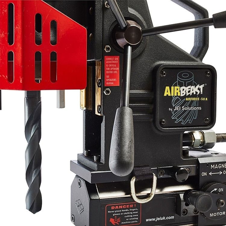 - Pneumatic drive and permanent magnetic base eliminates the need for electric power.