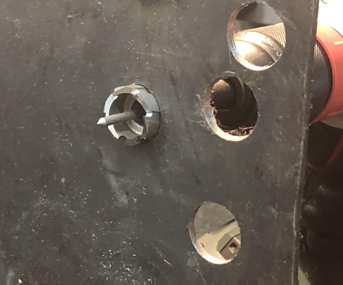 - Turbo™ mini cutters cut only the periphery of the hole, with the centre slug being ejected, therefore requiring less power and more speed.